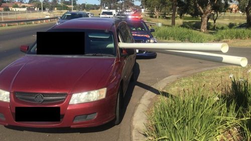 A 28-year-old Victorian man will face court after being caught driving with 1.6 metres of PVC pipe hanging outside his passenger side window.